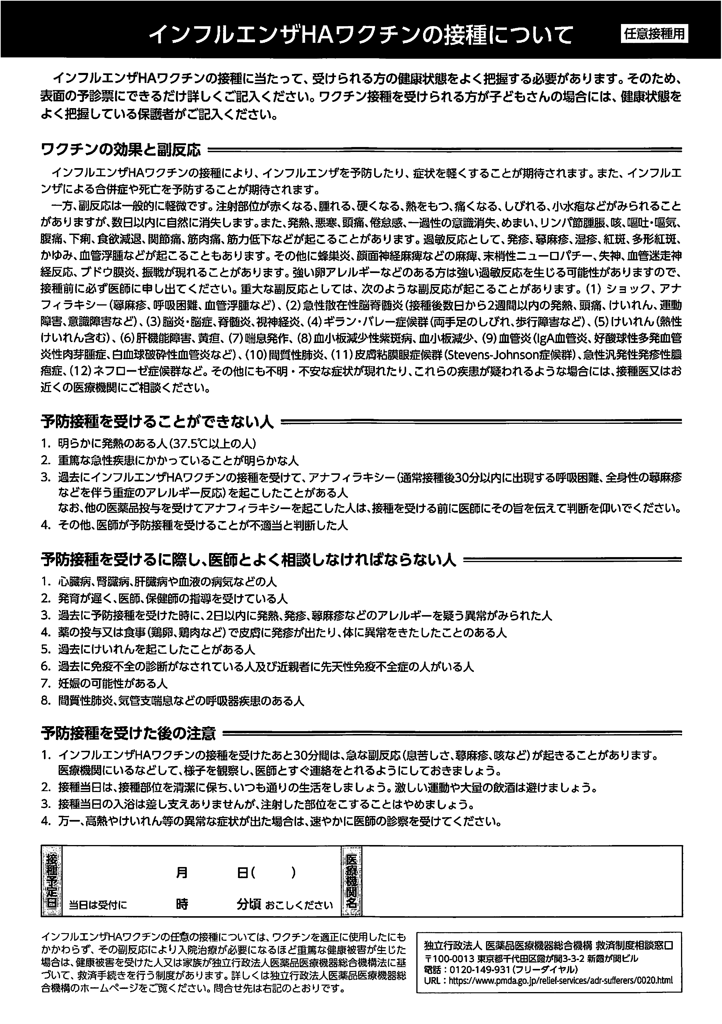 予診票とご説明の2枚を印刷して必ずお読み下さい。